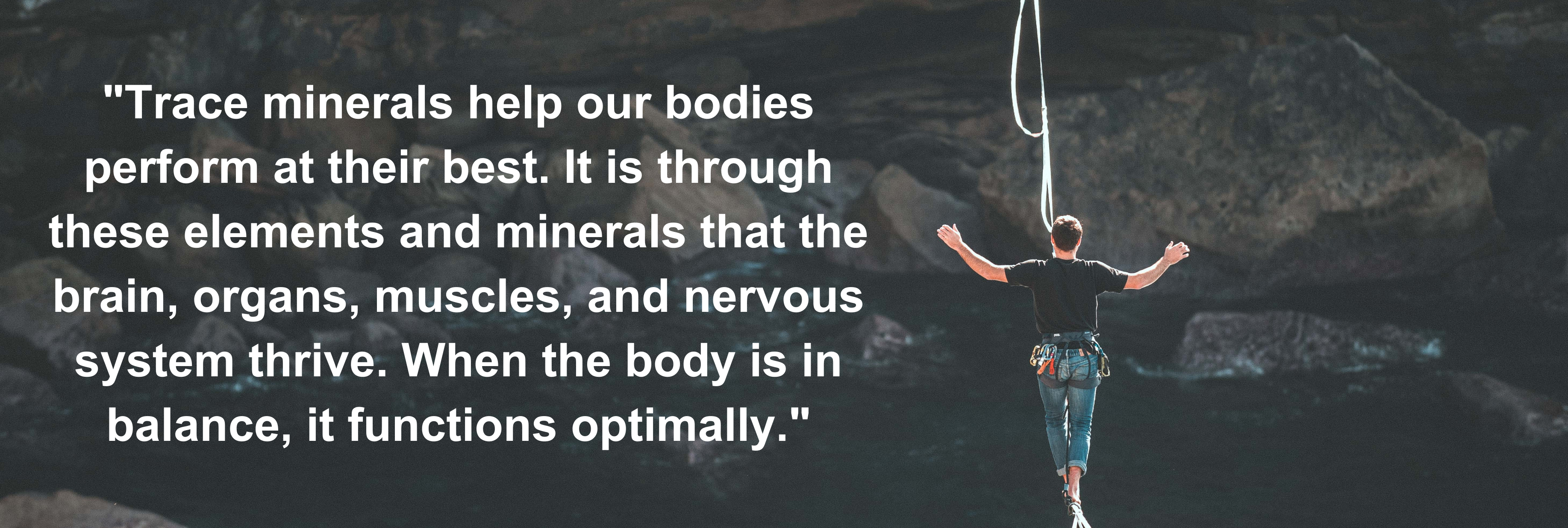 Trace minerals help our bodies perform at their best. It is through these elements and minerals that the brain, organs, muscles, and nervous system thrive. When the body is in balance, it functions optimally. But the balance is complex. If our bodies fall out of balance with key nutrients, we suffer the consequences of inefficiencies.