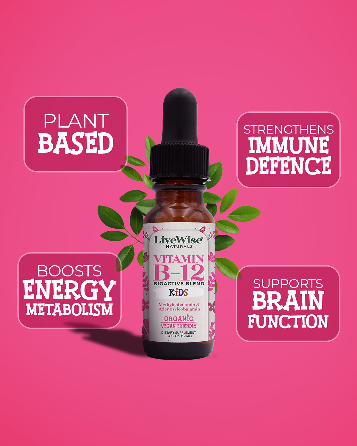 Vitamin B12 Drops for Toddlers & Kids – Energy & Nervous System Support (0.4oz)